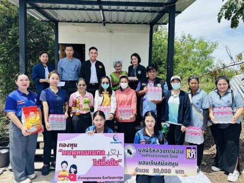 ภายใต้การอำนวยการของนางสาวอโรชา นันทมนตรี ผู้ว่าราชการจังหวัดนครปฐม โดยนายอิทธิพงศ์ จักษ์ตรีมงคล นายอำเภอพุทธมณฑล ลงพื้นที่เยี่ยมเยียน ให้กำลังใจ และมอบเงินสนับสนุนเพิ่มเติมเพื่อดำเนินการซ่อมแซมบ้าน จำนวน 5,911 บาท ภายใต้กองทุน “คนพุทธมณฑล ไม่ทิ้งกัน” และเงินสนับสนุน จำนวน 10,000 บาท จากมูลนิธิหลวงตาน้อย ให้กับนางสาวลิ เขียวคำรพ ณ บ้านเลขที่ 20 หมู่ที่ 2 ตำบลศาลายา อำเภอพุทธมณฑล จังหวัดนครปฐม